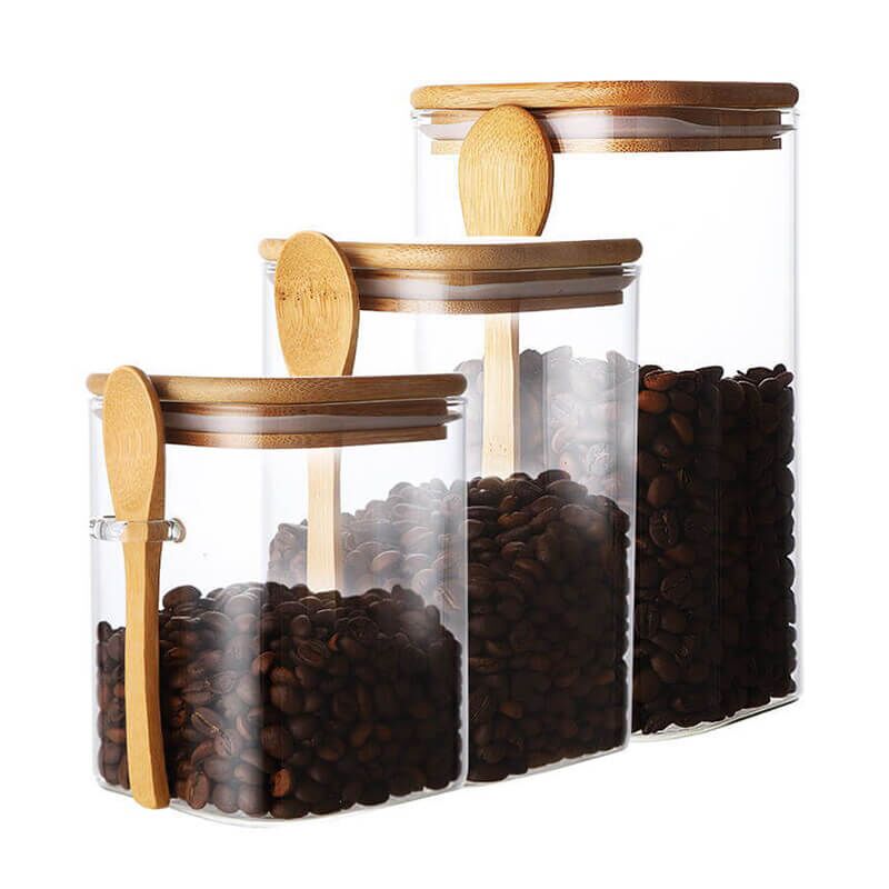 This canister sets for kitchen counter with airtight bamboo lid and spoon. The food silicone sealing ring fits the bamboo lid, tightly sealed, keeps dry, locks in freshness. The intimate spoon which is clean and hygienic and saves space, making it more convenient for you to use when taking food.