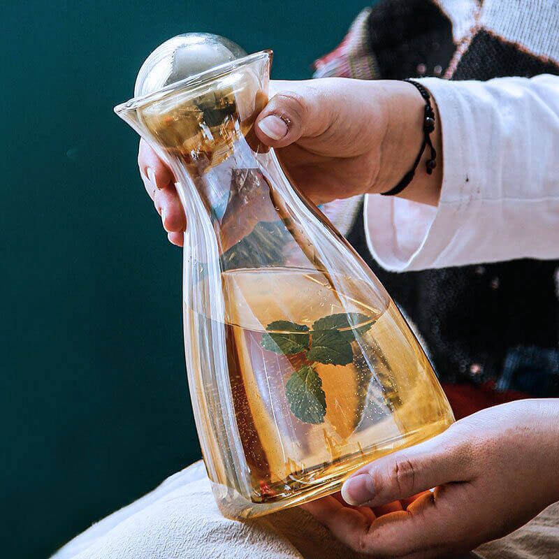 UNIQUE & FUNCTIONAL DESIGN: This pitcher with lid has a sleek, elegant design that makes it perfect to have out on the counter filled with your favorite drink. Our stainless steel lid with a double filter retains pulp and ice, allows smooth pour, and prevents leakage. Taste the luxury.