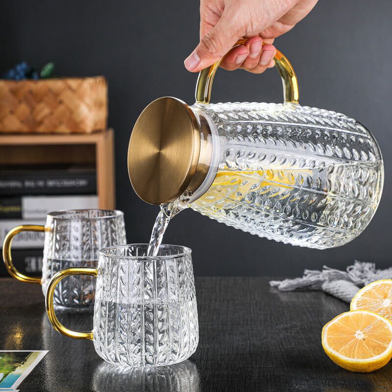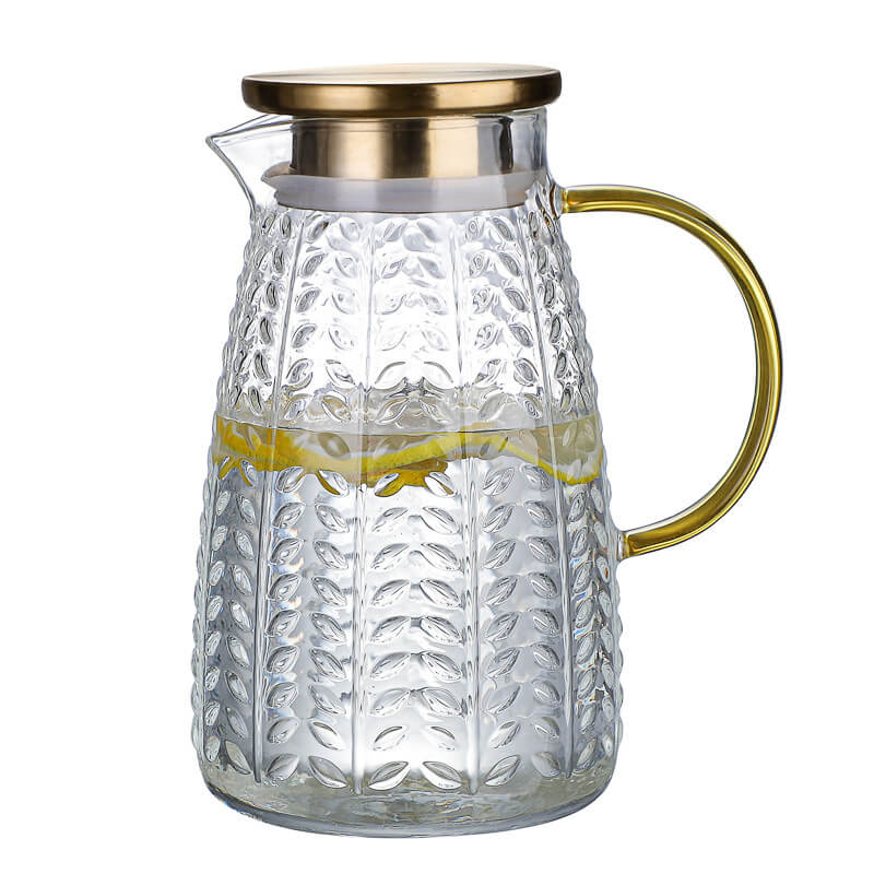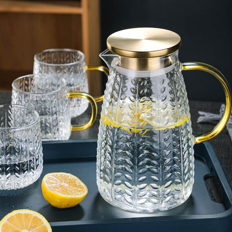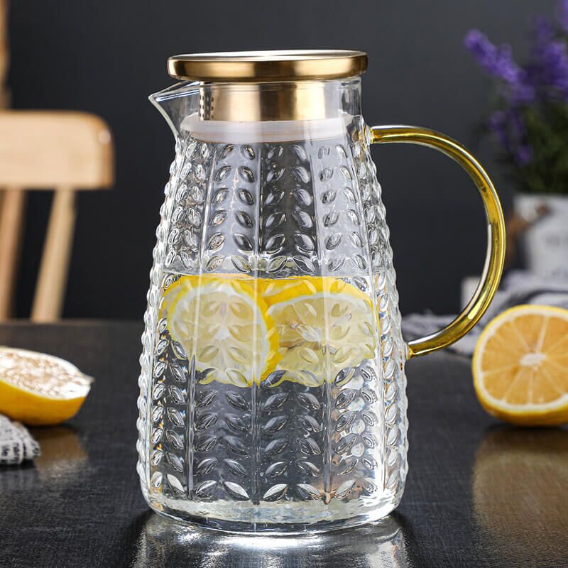 The glass pitcher with lid is made of high borosilicate glass, which is heat-resistant cold-resistant and free of BPA; The food-grade rubber ring around the lid ensures that the water pitcher with lid without dripping when pouring water; The wheat design adds a beautiful scenery to your home.